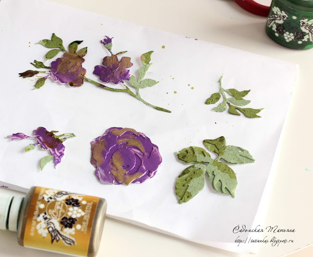 Для цветов использую краски с перламутром и получилось так очень здорово, лепестки, как у настоящих цветов более шелковистые чем листья.